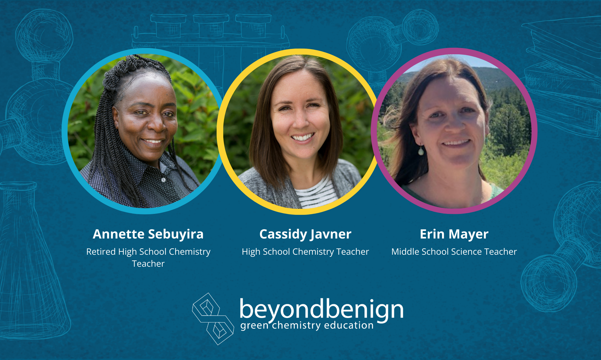 We caught up with three educators who are helping pave the way for a greener future — Cassidy Javner, Erin Mayer, and Annette Sebuyira. This summer, these Beyond Benign Certified Lead Teachers are teaching professional development courses for middle school and high school science teachers at various levels of green chemistry engagement.