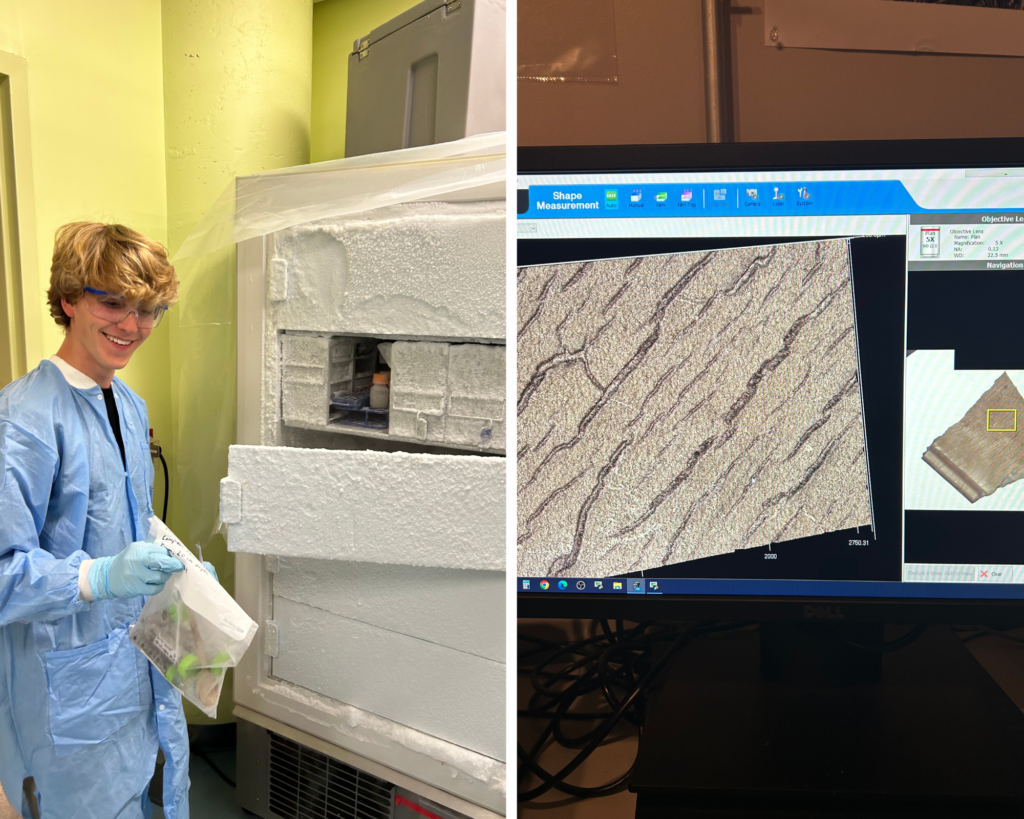 Freezing Compost Microbe Samples – This is a fellow undergraduate research assistant Parker Bolton working on another research project from the same compost facility samples. We both put our samples in this freezer to store the microbial DNA to analyze.