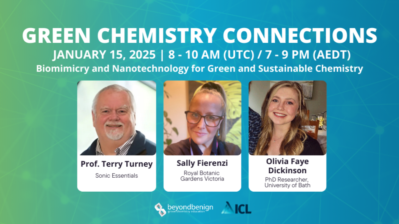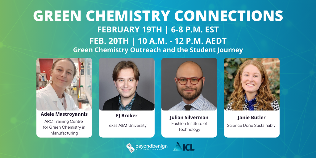 Please feel free to share these webinars with friends and colleagues of all disciplines and backgrounds. We know the true power of our green chemistry community is how we connect with the world— so, come connect with us!