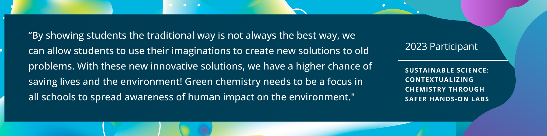 MIDDLE SCHOOL AND HIGH SCHOOL TEACHER COURSE: Sustainable Science: Contextualizing Chemistry Through Safer Hand-On Labs