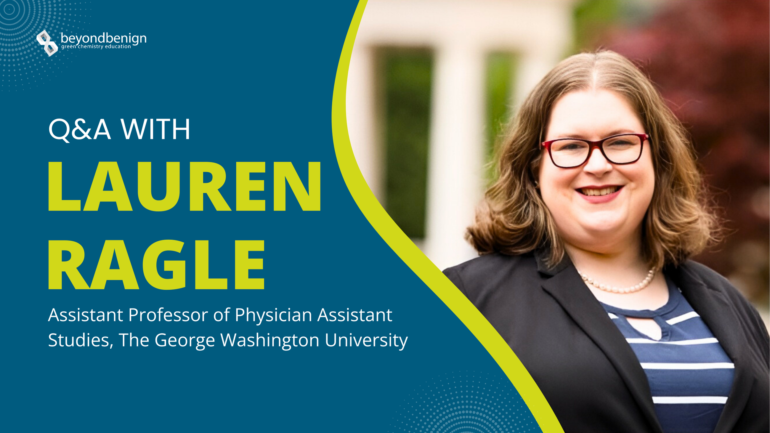 This month, we spoke to GCTLC member Lauren Ragle (The George Washington University). She is an Assistant Professor in the Post-baccalaureate Pre-Medicine Program housed in the Department of Physician Assistant Studies. As a bio-organic chemist, Lauren has dedicated her career to an infusion of disability advocacy and green chemistry education. In this Q&A, Lauren discusses the intersection of her personal experiences and professional journey, providing valuable insights into how advancing green chemistry and disability advocacy can go hand in hand.