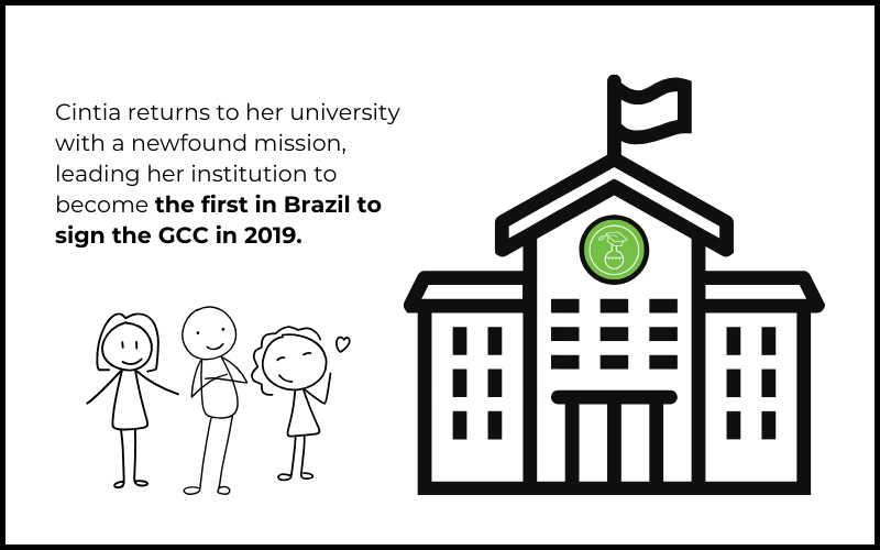 Her efforts didn’t stop there; Cintia inspired more institutions across the country to join the GCC. Today, the network comprises 14 Brazilian universities. This national movement was amplified by her connection to Beyond Benign’s global community, where she could share experiences, gather resources, and adapt strategies that resonated with the unique needs of Brazilian educators and students.