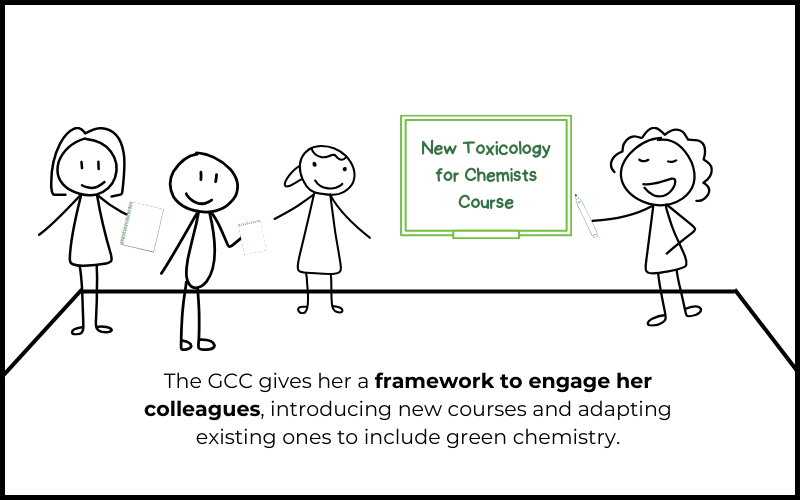 Through the GCC, Cintia reimagined the curriculum at her institution, embedding green chemistry as a module in a mandatory first-year course. The community of GCC institutions offered insights and shared practices that allowed her to shape a program tailored to her students and faculty.