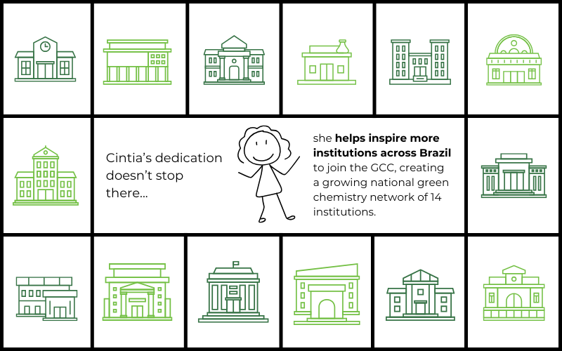 Cintia’s journey highlights the power of one individual working within a supportive global community to drive systemic change. By institutionalizing green chemistry principles, inspiring students and colleagues, and forging connections nationwide, she is paving the way for a greener future in education and industry alike.